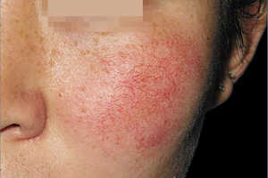 红血丝图片显示,患者的皮肤上看以看到细小的毛细血管,患者常常有紧绷及灼热感。并且皮肤很干燥缺乏水分,当使用不适合的化妆品时,皮肤上会有发痒或者热感。如果没有注意防晒护理皮肤很容易受到伤害。很多患者在食用海鲜等出现皮肤过敏,在室内温差过大时,皮肤内有灼热感。